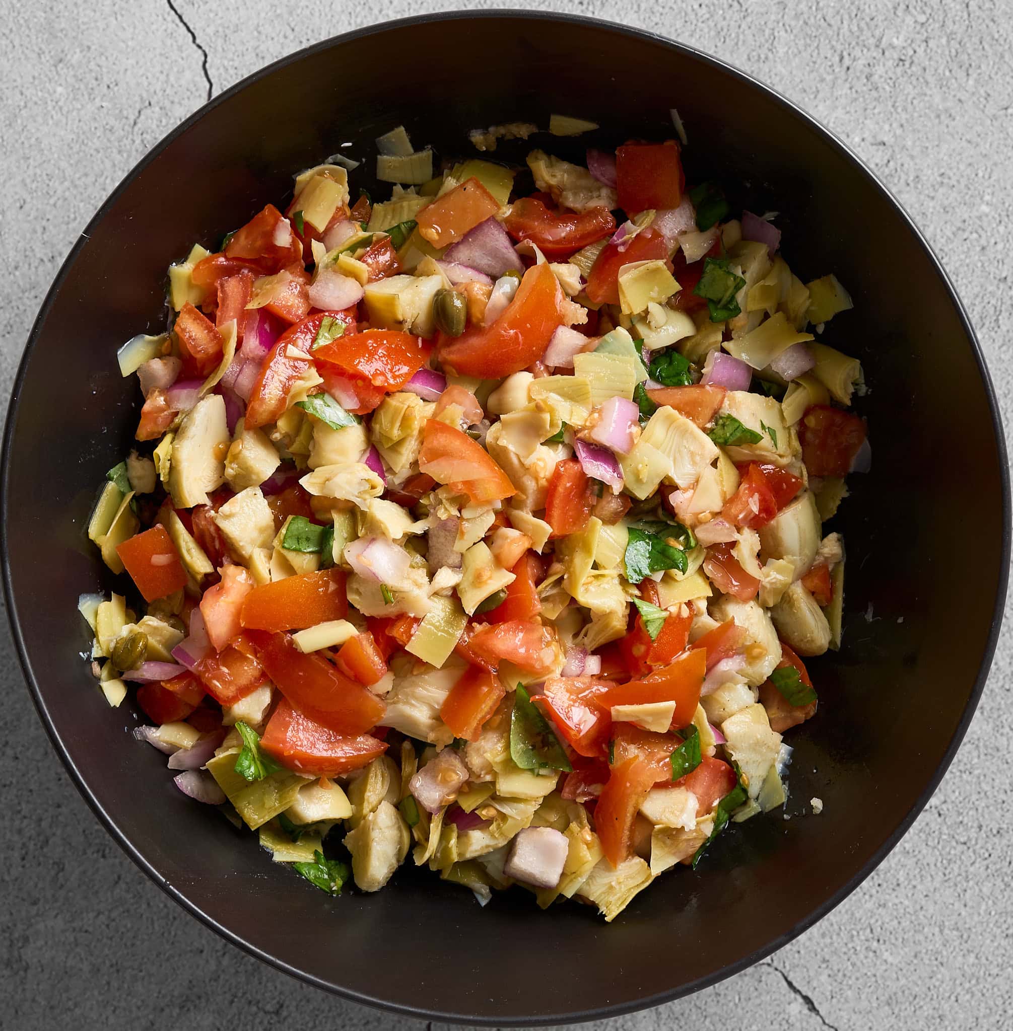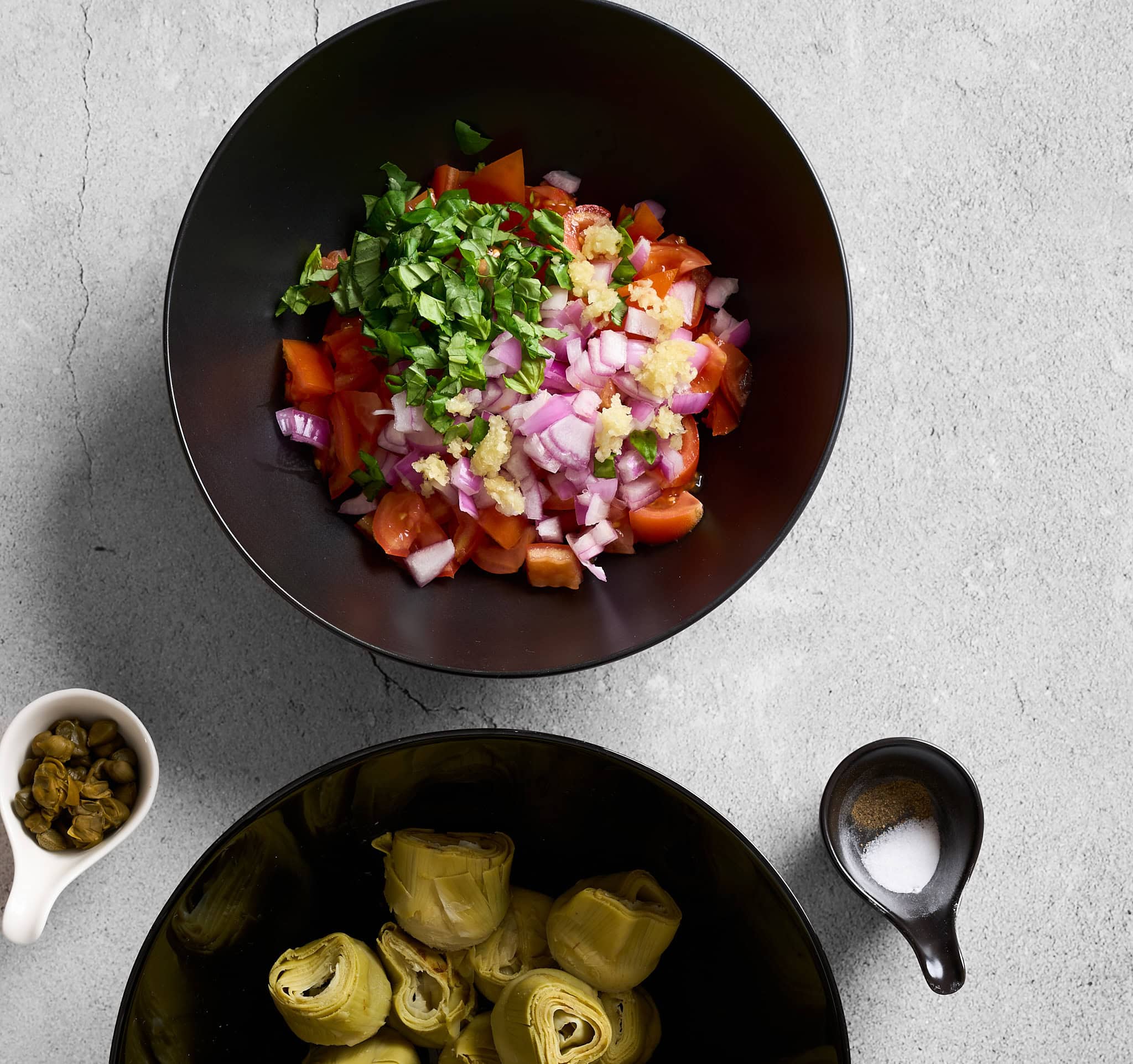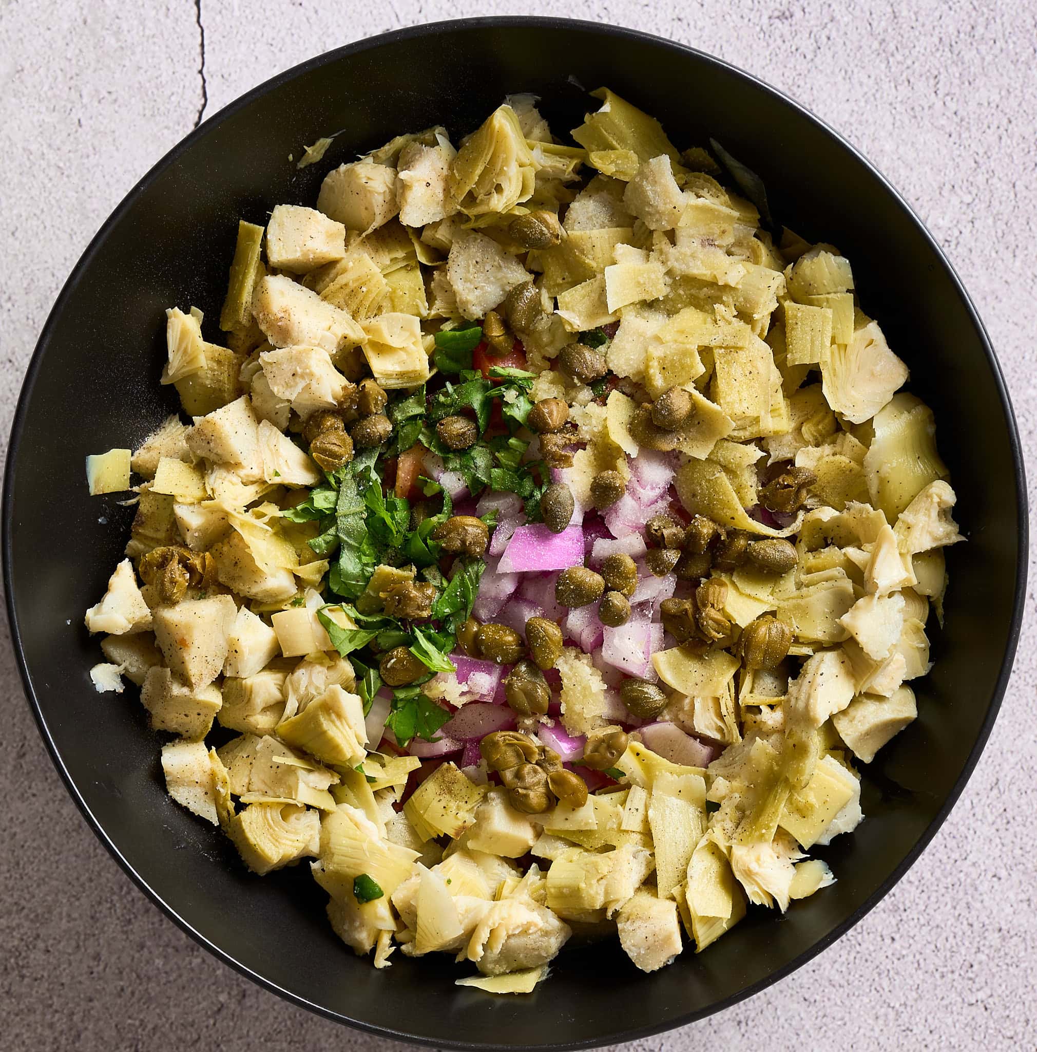 Since I don’t want you to miss out on the briny flavor of olives in this artichoke salsa recipe, I do add jarred capers. This is a wonderful substitute for olives in this recipe since it doesn’t overpower the salsa at all, but it adds a little saltiness and brininess which colors this recipe with a layer of flavor that would otherwise be missing.