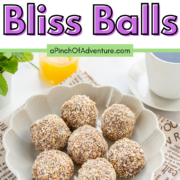- Continue shaping all of the bliss balls until you have used it all up. Cover the pan of bliss balls with plastic and place them in the fridge until ready to eat. Enjoy!