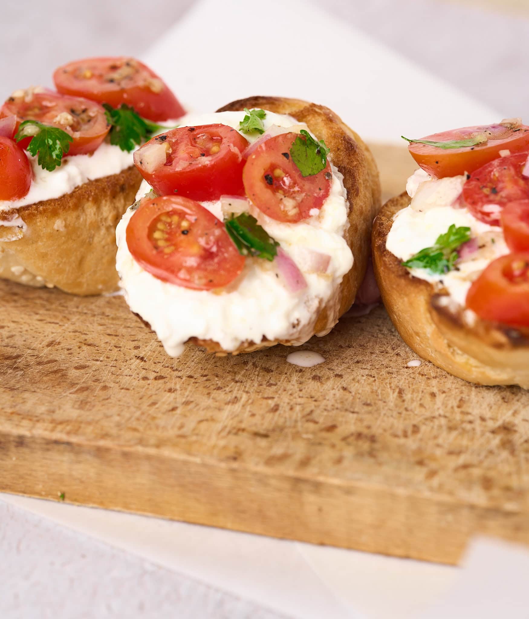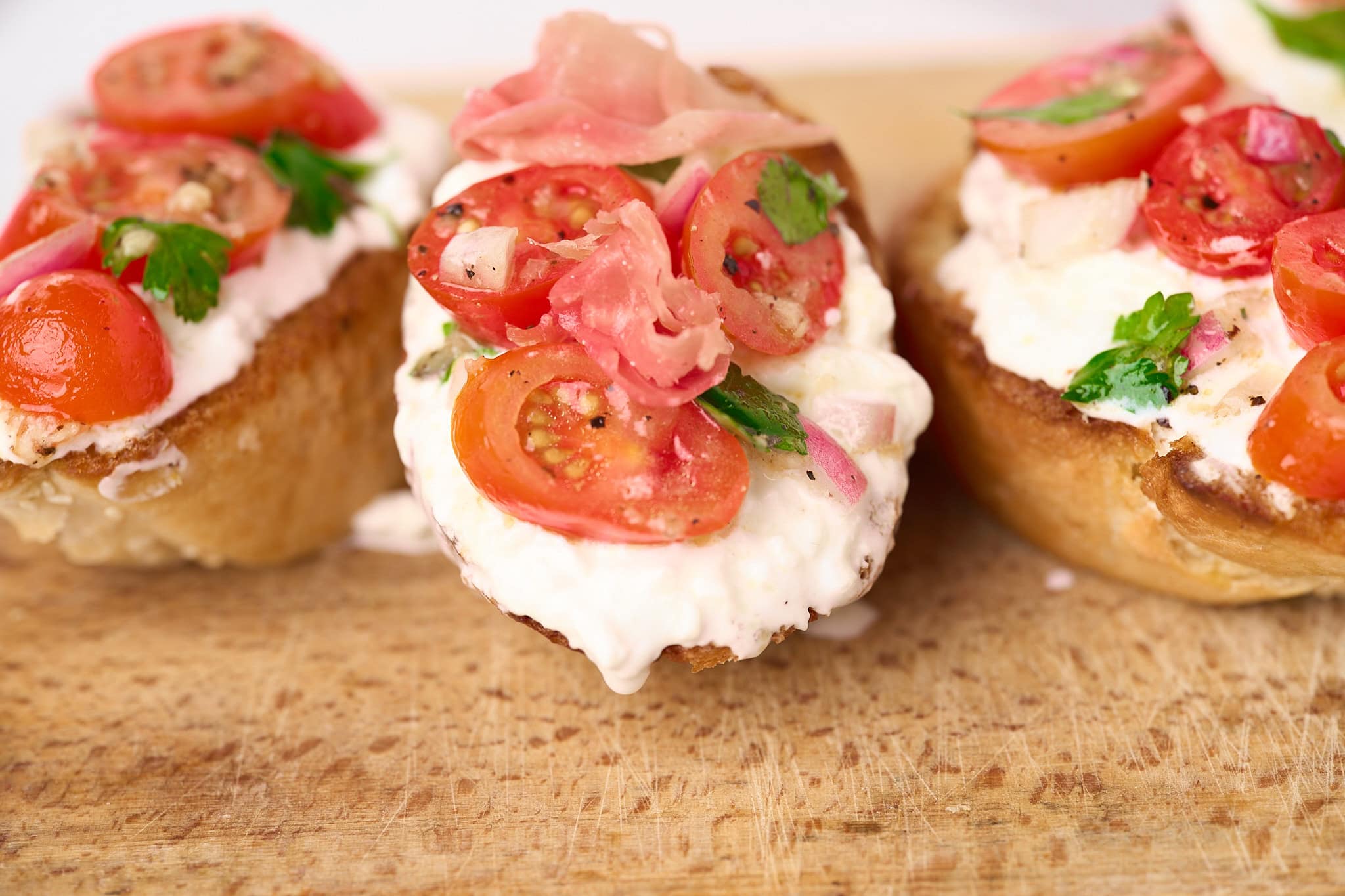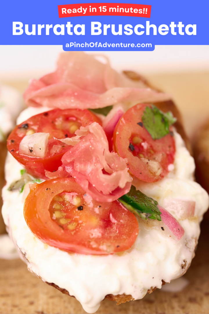 I don't really care about the difference in this recipe, how thin you cut your crostini or if you grilled your bruschetta toasts. It doesn't matter. The bruschetta toppings are the most important part of this burrata recipe.