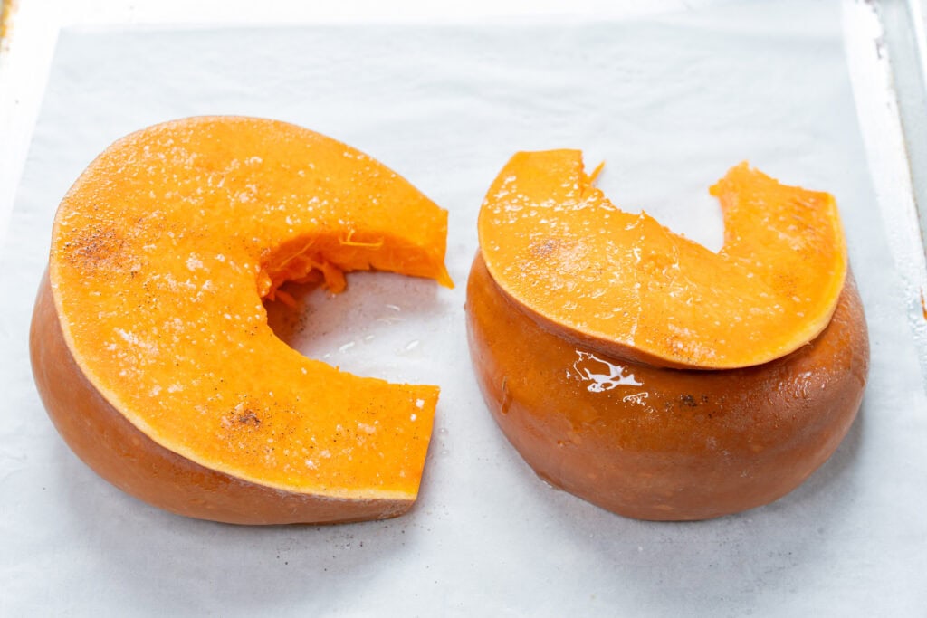 Once the butternut squash is roasted and fork tender, scoop it out with a spoon or cut it out of the skin.