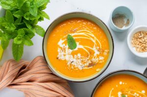 You will see that the soup has a super creamy texture, due to the butternut squash. If it seems too thick, add a little more vegetable stock.