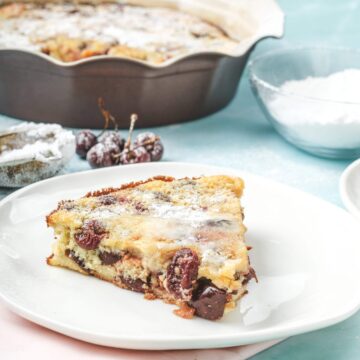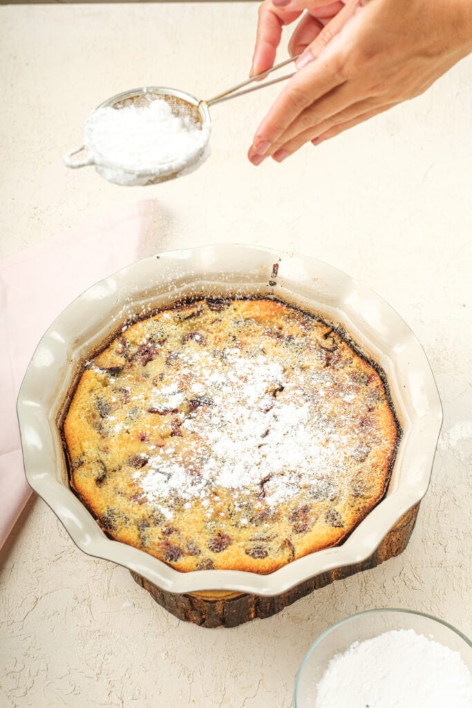 Cherry clafoutis is best served when it is slightly warm. You don’t want it to be too hot, and you don’t want it to cool off all the way either.