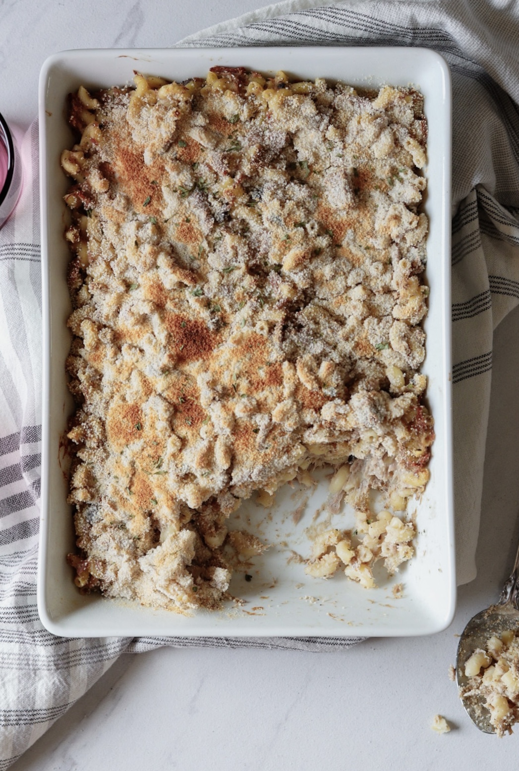 Just mix everything together, bake until bubbly, and finish with a quick broil for that perfect golden top. Add some black pepper before serving for extra flavor!