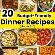 Easy dinner recipes under $10 for families, frugal meal ideas, cheap weeknight dinners, and stress-free recipes for busy nights.