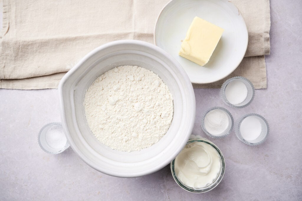 These basic ingredients for the buttermilk biscuits are probably already in your pantry. Let’s take a moment to focus on butter and buttermilk. Butter is an essential ingredient for flaky biscuits.