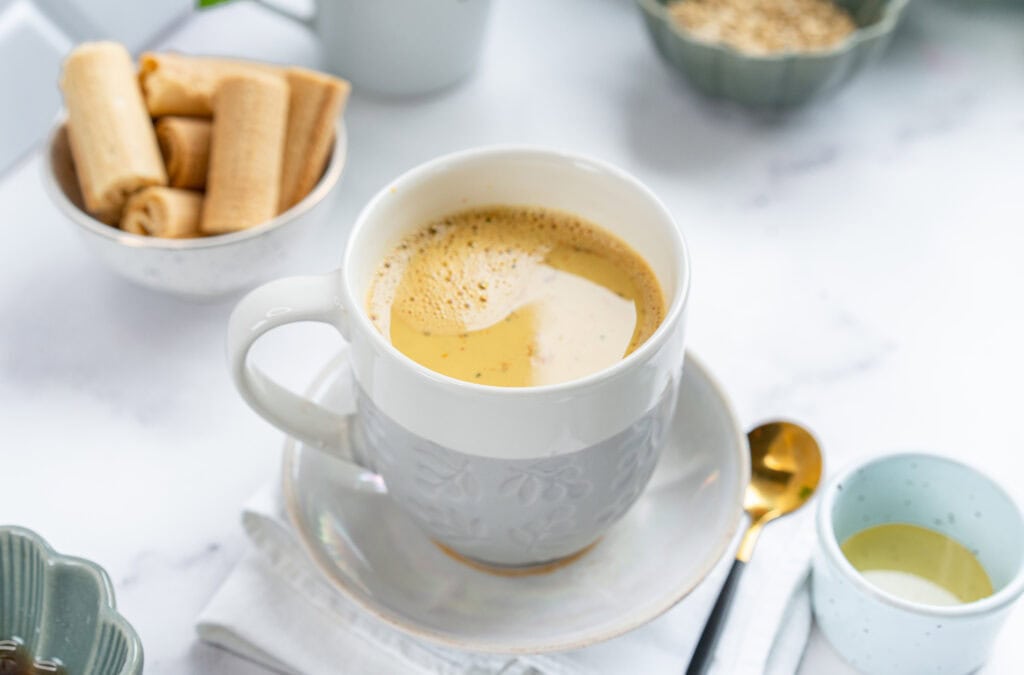 Golden milk is also referred to as turmeric milk or turmeric latte. It is called this because turmeric when added to milk, makes it look a golden color, hence the name. Turmeric is a flavorful spice that is yellowish orange in color and has many health benefits to it.