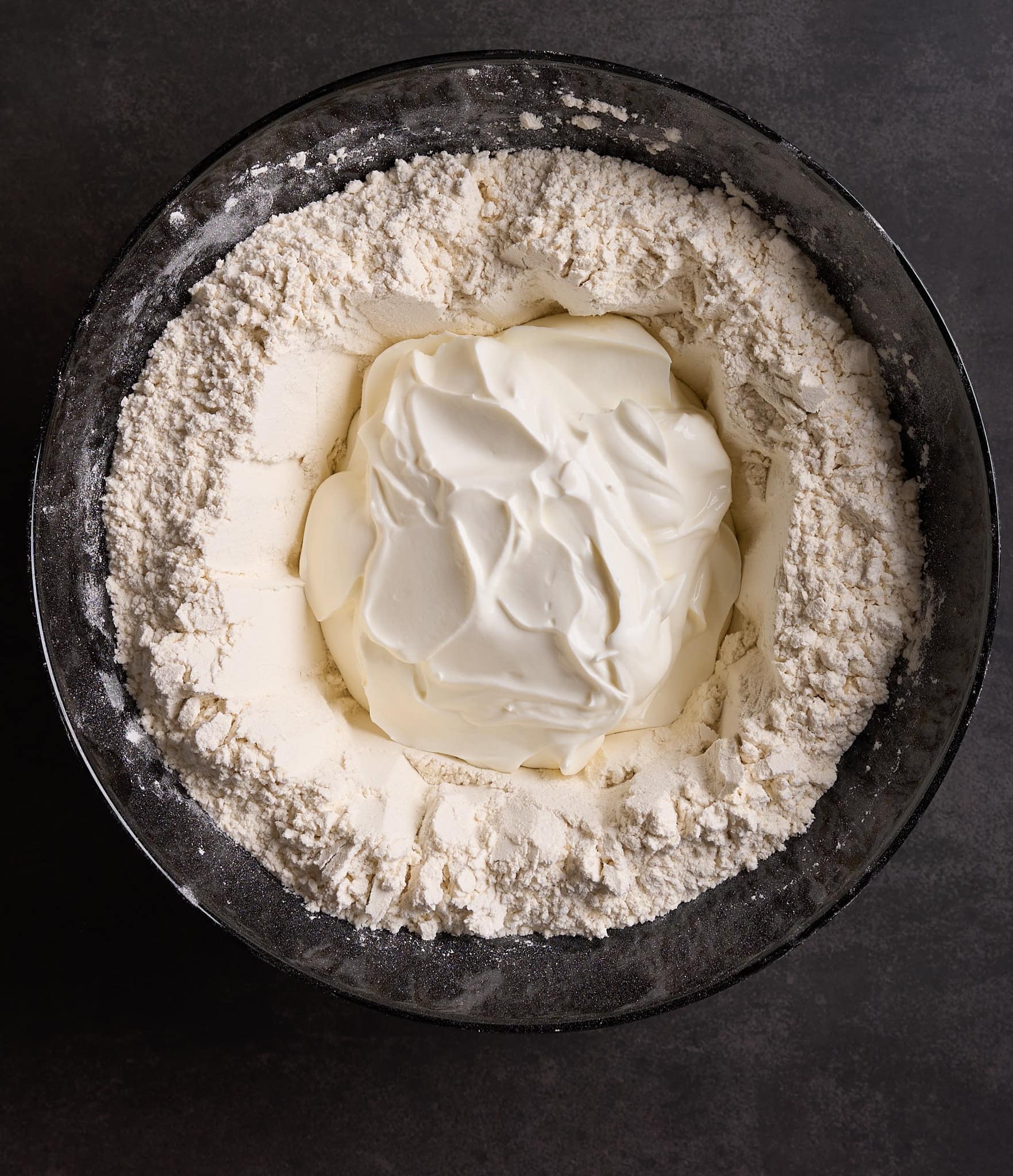 Step 3 - Make a well in the center and add the Greek yogurt.