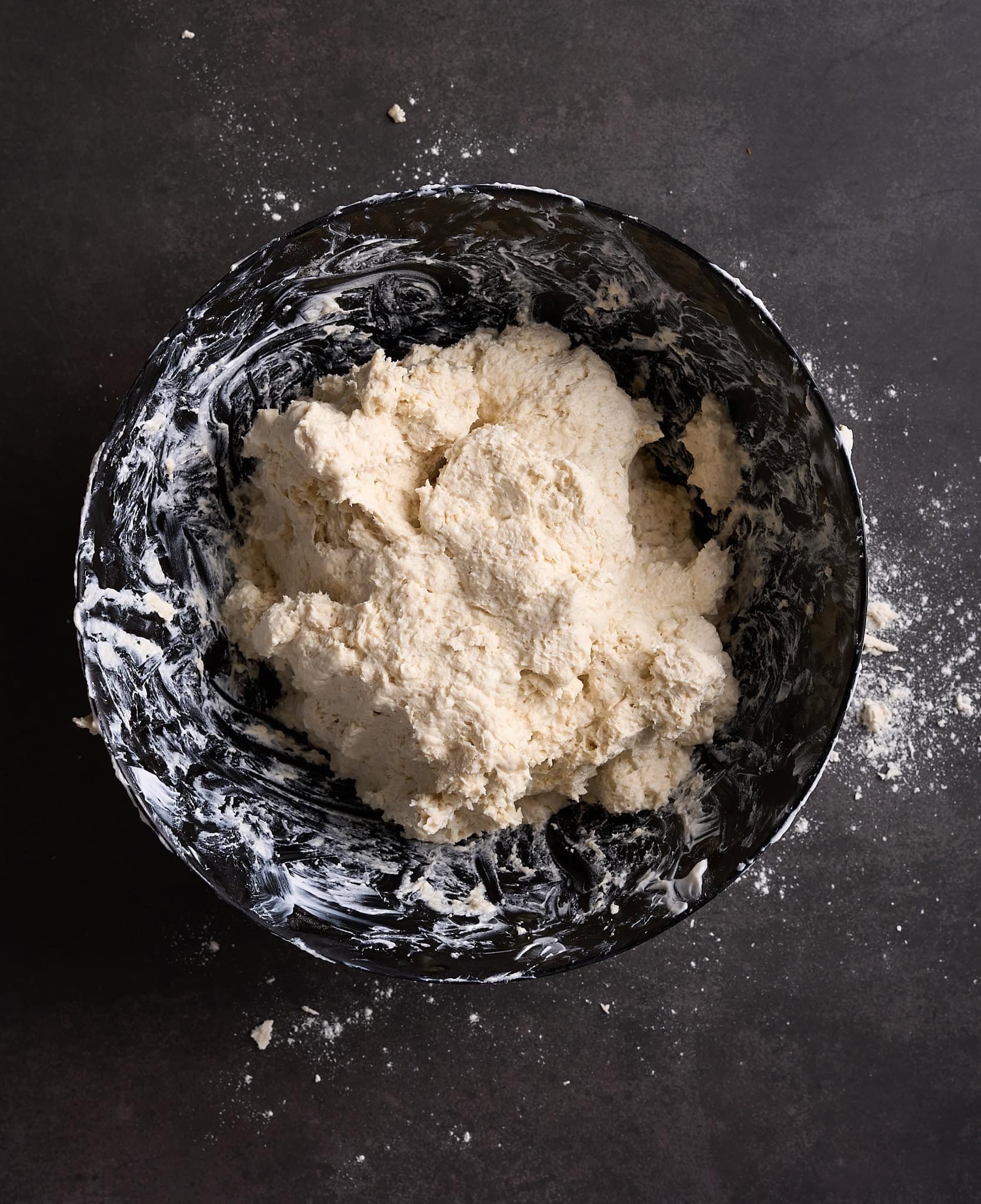 - Mix until a shaggy dough forms.