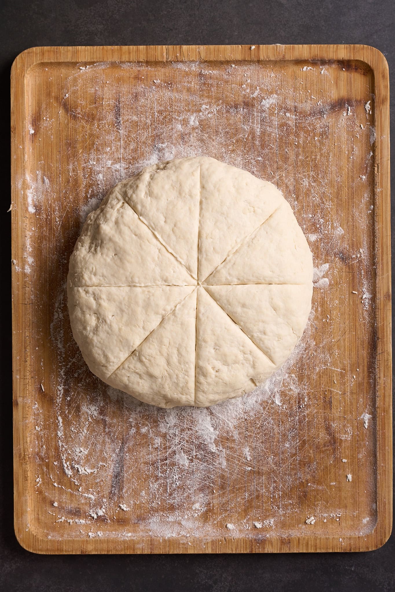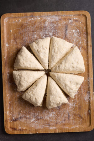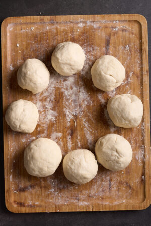 - Divide the dough into 8 equal portions.