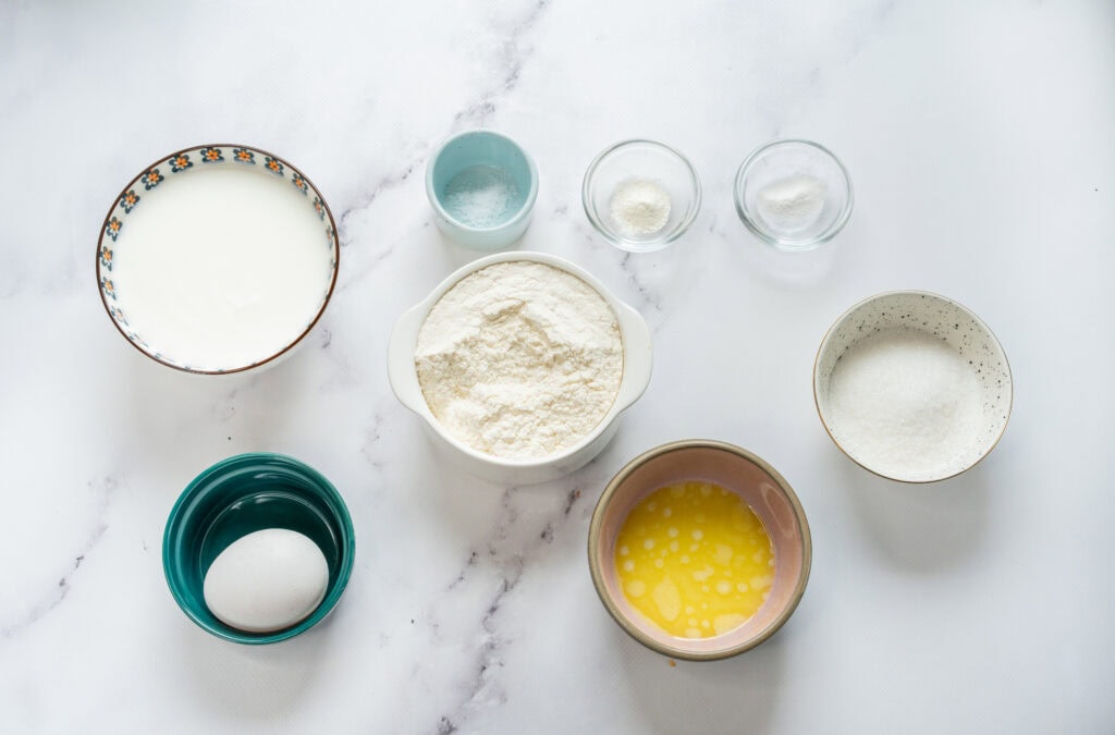 There is not much more to this recipe than a basic batter mix which includes buttermilk, flour, salt, sugar, eggs and a leavening agent.