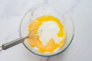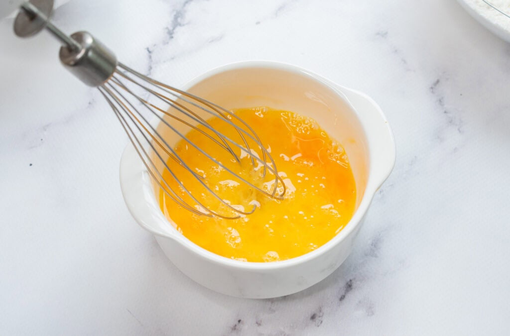 In a separate bowl, add the egg. Vigorously whisk it together for a minute or two until it foams up and becomes frothy.