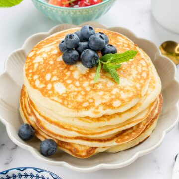These thick and fluffy griddle cakes are cooked to perfection on the stovetop in butter and doused in more butter and real maple syrup.