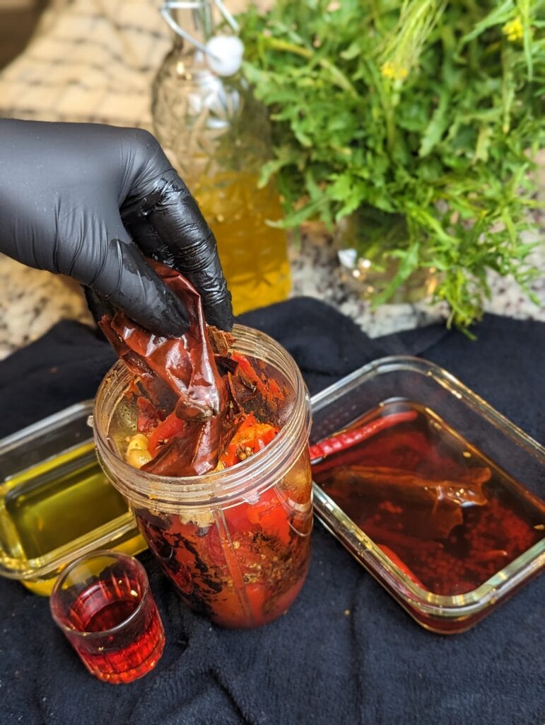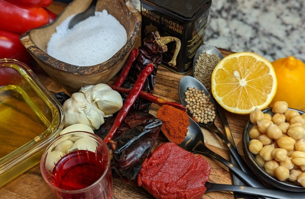 In this recipe, we'll be using guajillo peppers. These dehydrated delights are hotter than a poblano but milder than a jalapeño. Native to Mexico, guajillos are popular in various cuisines for making salsas, chili sauces, chili oils, and adobos. Combined with roasted red peppers, they create the perfect sweet and spicy harissa sauce that will dance on your tongue.