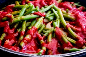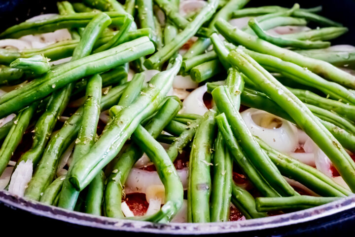 Last but not least is the delicate green beans. They add buttery and nutty flavors that are intensified when roasted. Younger beans taste sweeter, while older green beans are more bitter.