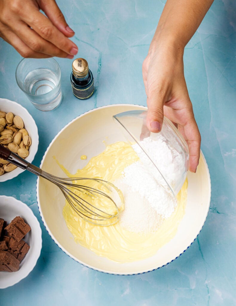 Also, make sure to buy salted pistachio nuts (or lightly salted). Don’t accidentally get an exotic flavor like chili lime or cracked pepper pistachios. That would most definitely ruin our recipe!