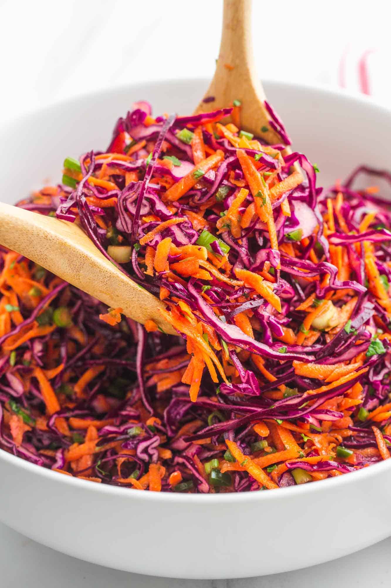 It uses red cabbage, carrot, chili, green onion, and parsley to keep things light and flavorful.