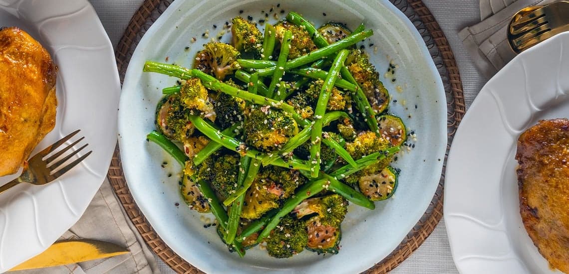 This veggie medley uses broccoli, green beans, and zucchini as well as sesame seeds; it’s a lighter (but still super tasty) side to your mac and cheese!