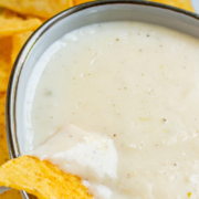 When it comes to ultimate snack foods, this one wins the prize! This warm white queso dip hits the spot with your favorite tortilla chips and it’s dangerously addictive.